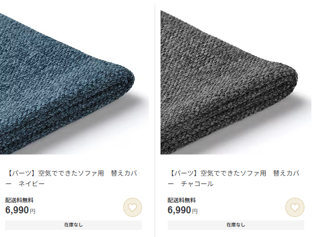 2026年現在、無印良品公式サイトおよび店舗では「空気でできたソファ」専用カバーの販売は確認されていません。